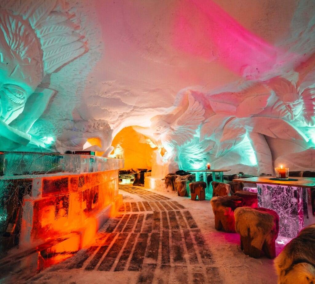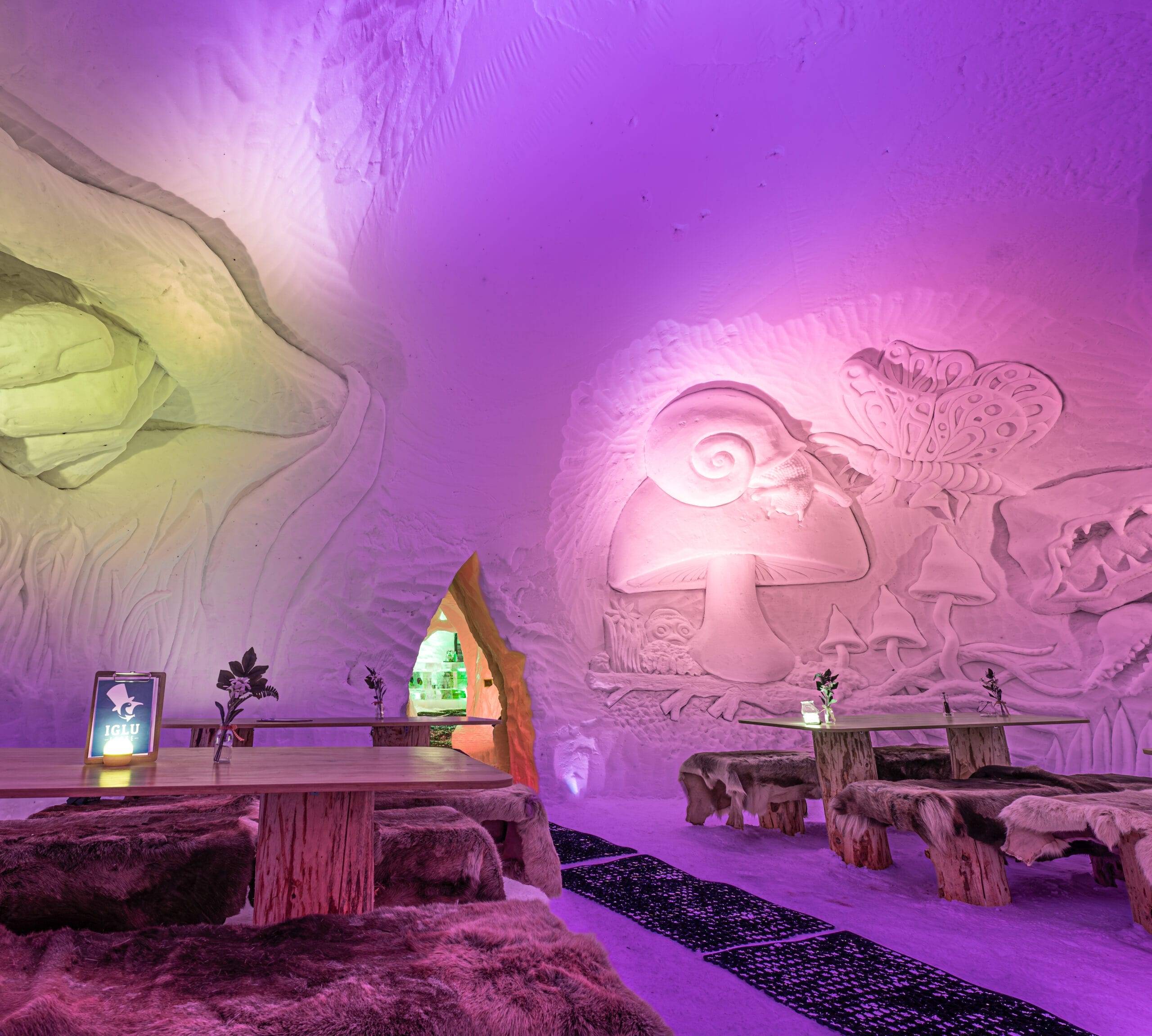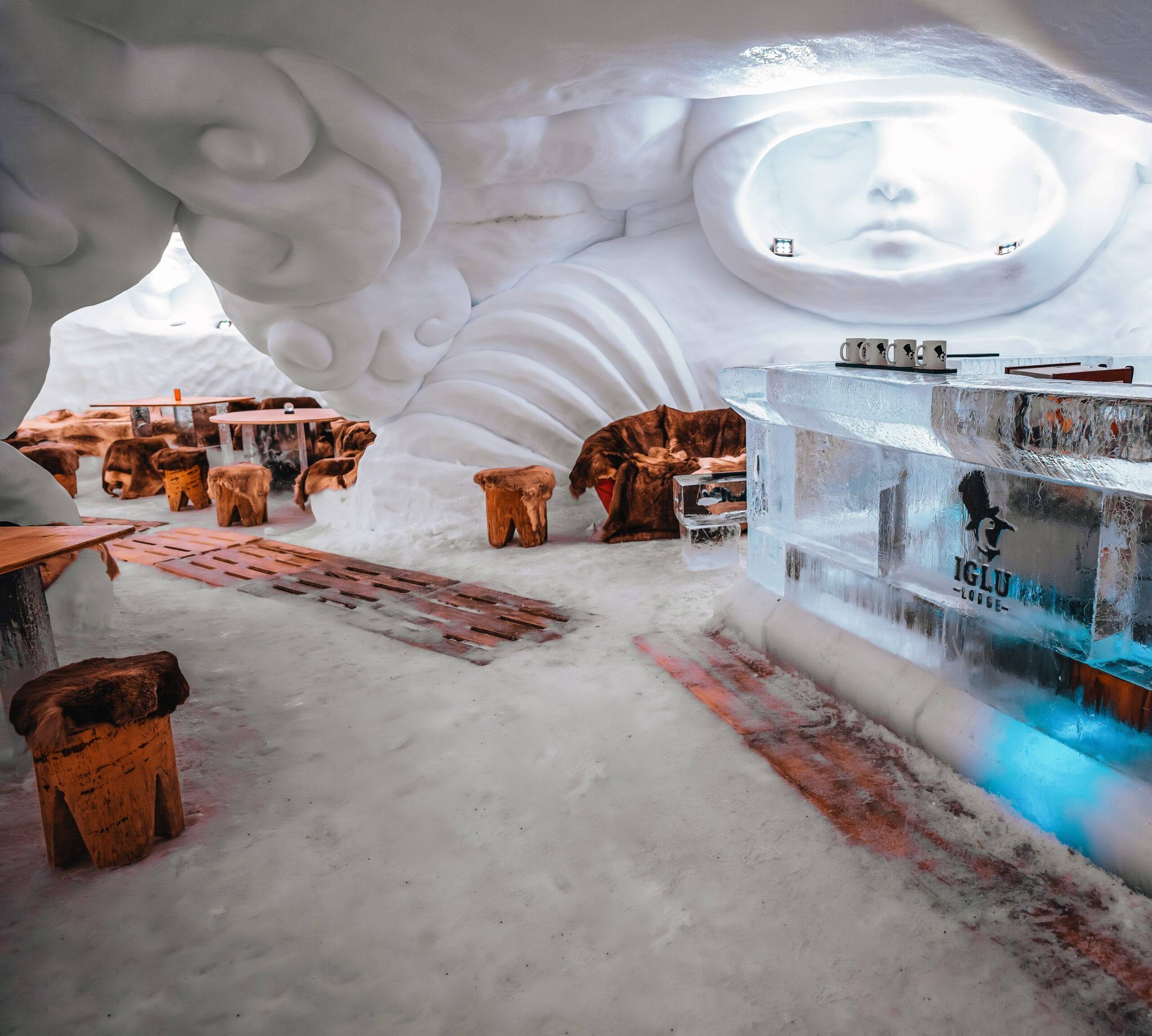 Jedes Iglu bietet Platz für zwei bis vier Personen und ist mit hochwertigen Schlafsäcken, isolierenden Unterlagen und Rentierfellen ausgestattet, sodass die Nächte trotz der winterlichen Temperaturen angenehm warm bleiben. Ergänzend sorgen Fass-Saunen und Hot-Tubs, aufwendig gestaltete Aufenthaltsbereiche und das Restaurant-Iglu für ein komfortables Gesamterlebnis. Da die Anlage jedes Jahr neu errichtet und individuell gestaltet wird, erleben die Gäste in jeder Saison eine einzigartige architektonische und künstlerische Umsetzung.